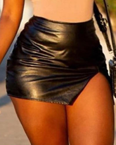 Slit HIgh Waist Leather PU Skirt
