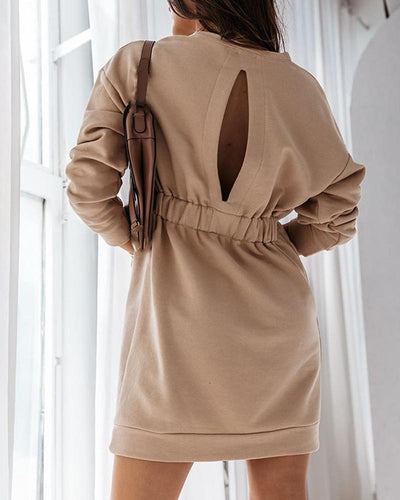 Solid Long Sleeve Back Cut-out Loose Sweatshirts