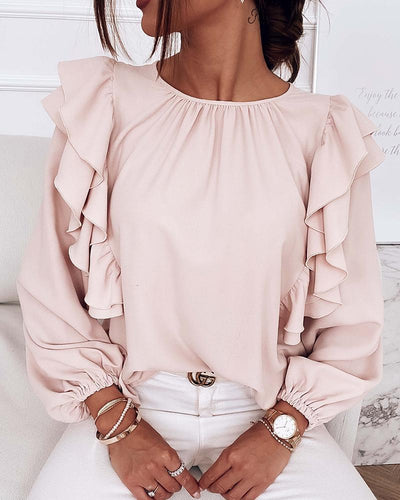 Solid Long Sleeve Crop Top & Drawstring Ruched Skirt Set