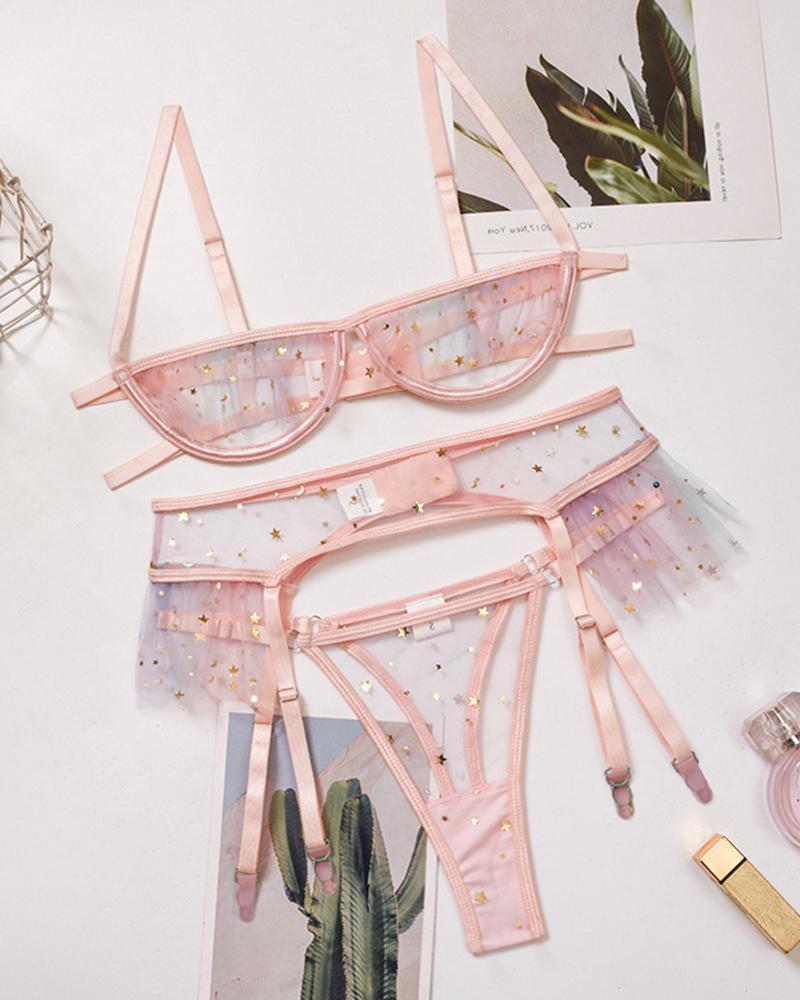 Solid Yarn Splicing Strap Lingerie Sets Bra Sets