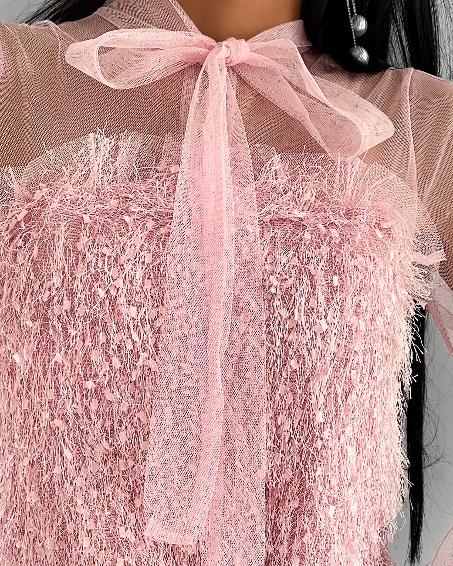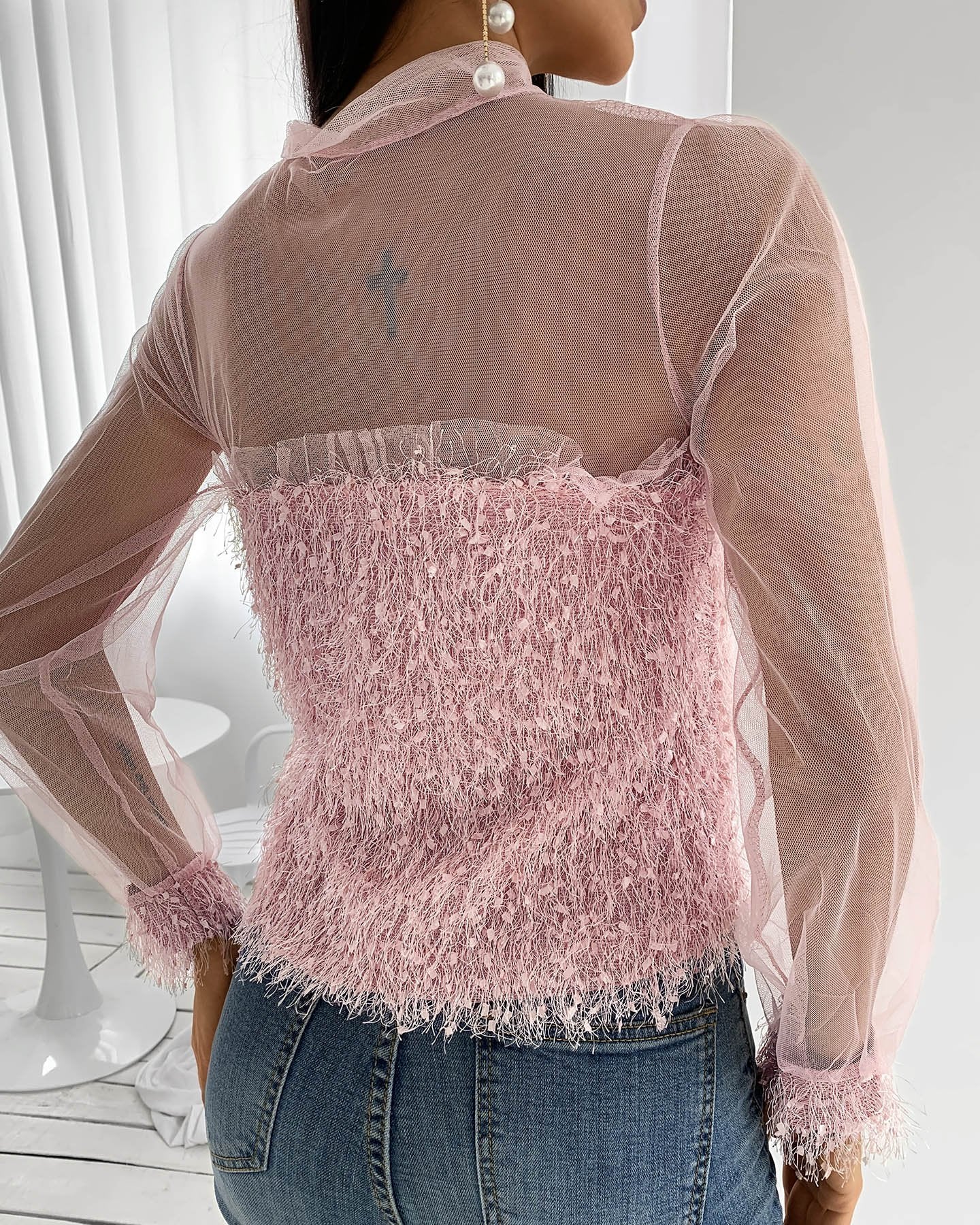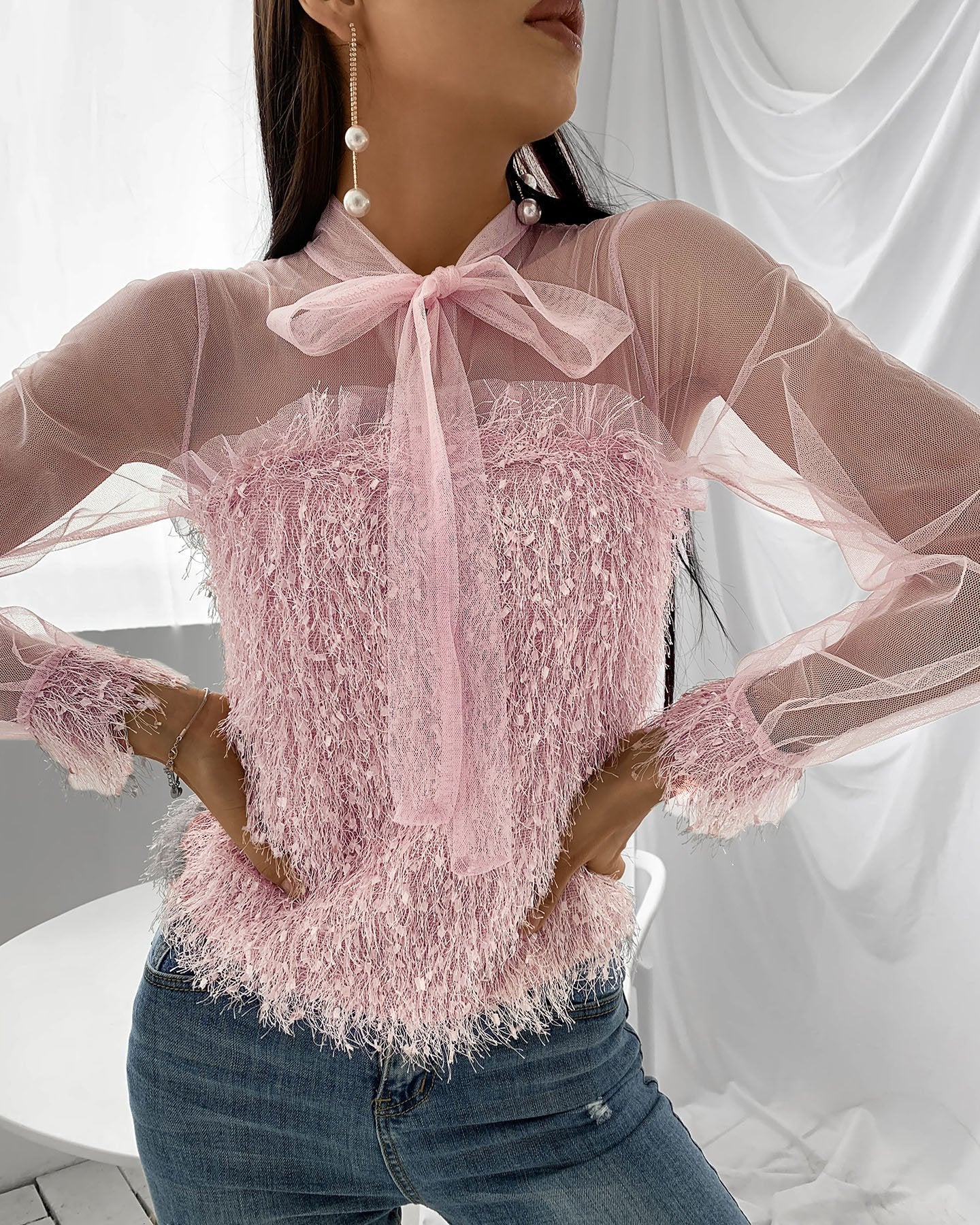 Pattern Type:Fluffy,Sheer Mesh,Tie Front,Patchwork